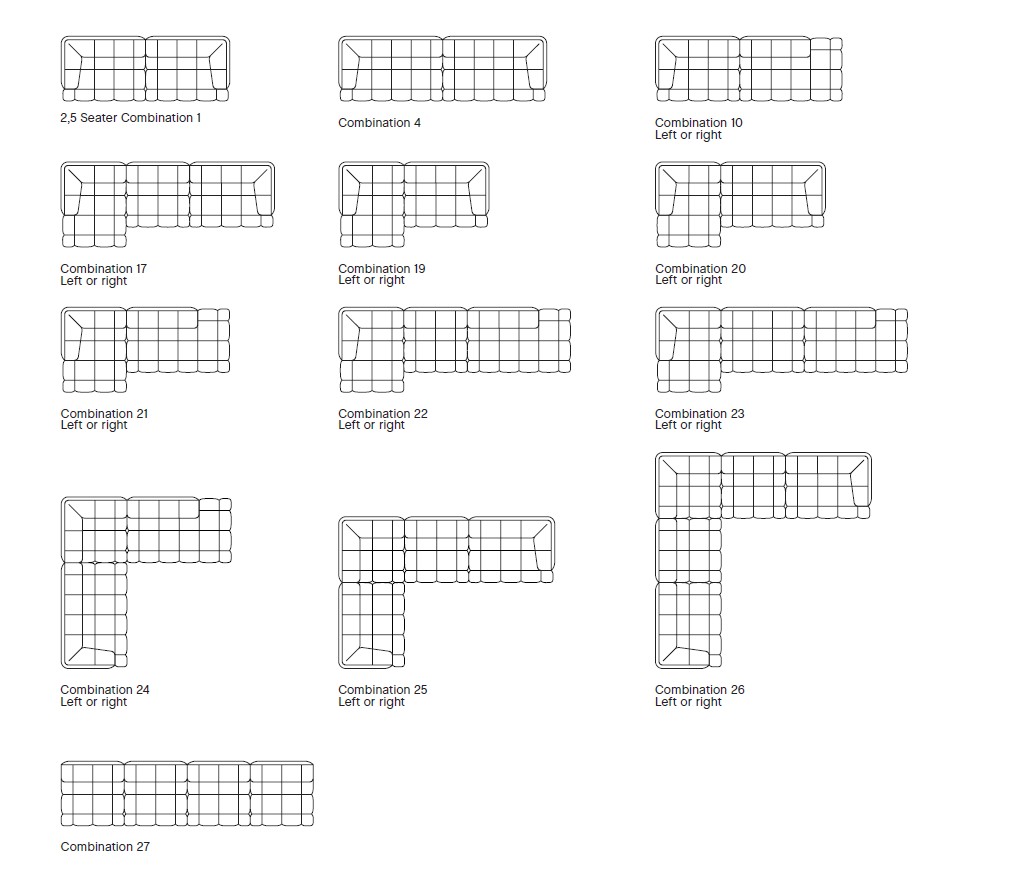 Son revêtement matelassé, aux finitions raffinées, se décline en de multiples versions (13 versions possibles), enveloppant les assises en mousse et ouate pour un confort remarquable.