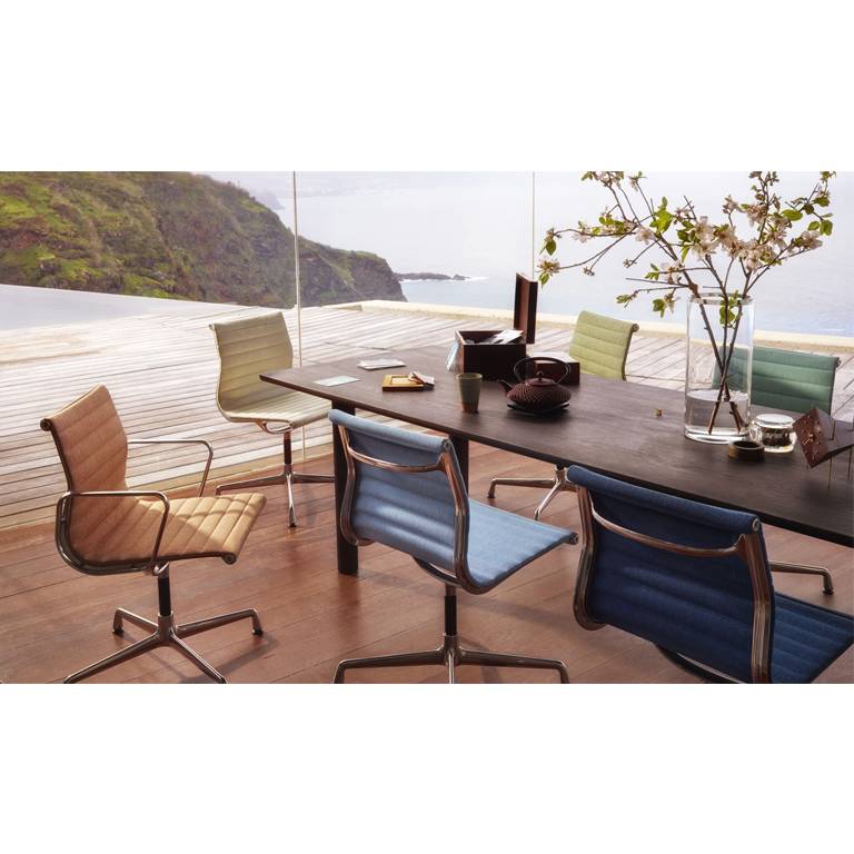 Le fauteuil Aluminium EA 104 de chez Vitra sont légers et fonctionnels pour un home office idéal ! Les piétement pivotant et leurs accoudoirs ajoutent à cette facilité d’utilisation. Matériaux : aluminium chromé et revêtement textile Hopsak